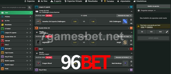 O 96bet oferece uma grande seleção de opções de apostas em e-sports com probabilidades competitivas